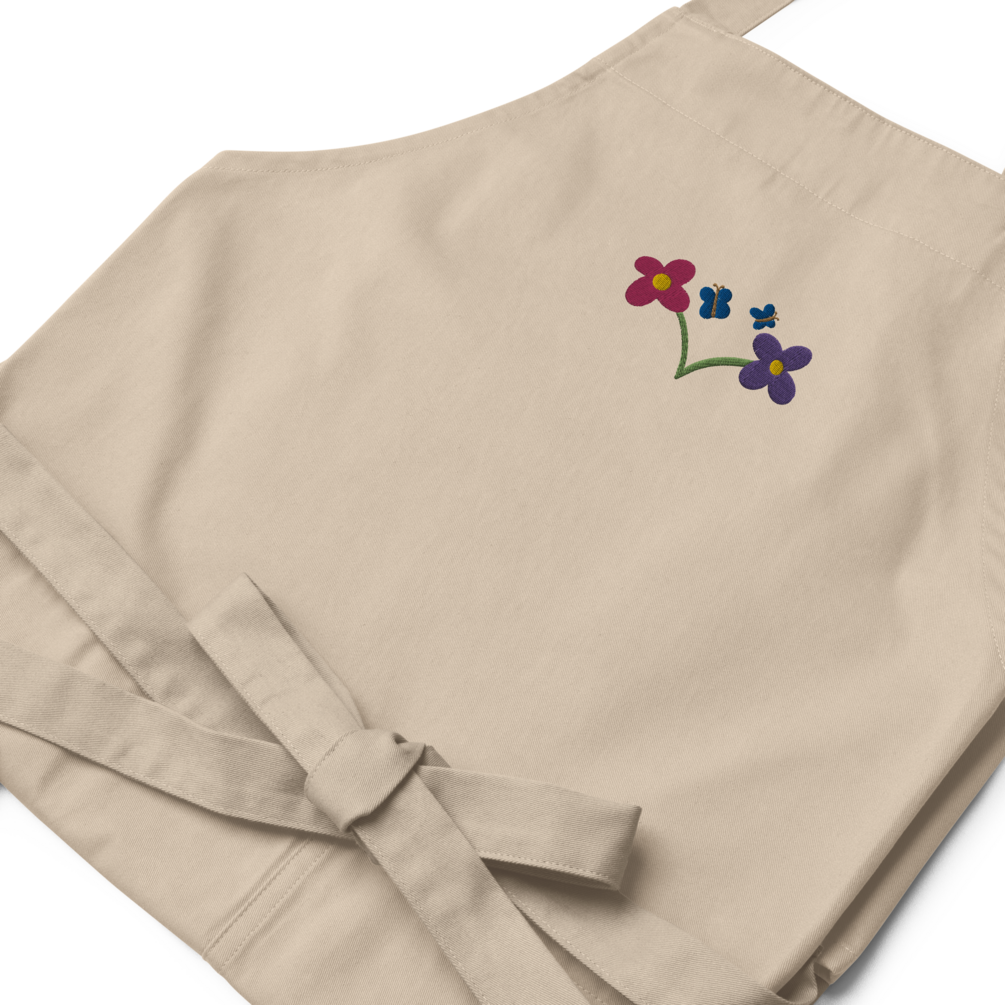Organic Cotton Apron With an Embroidered Flower Design